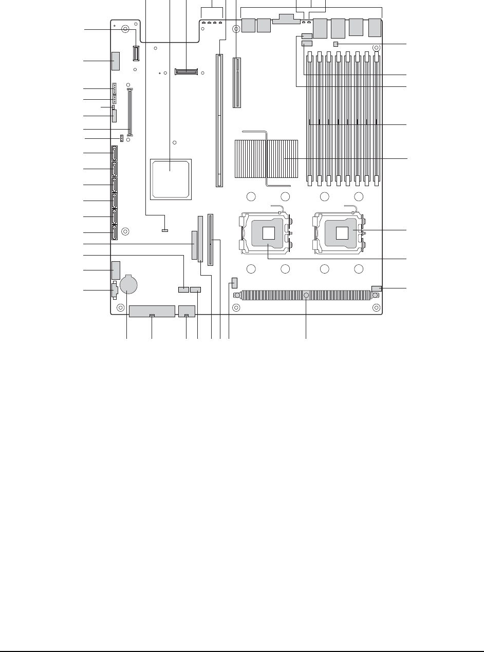 The following figure shows the board layout of the server board. Each connector and major